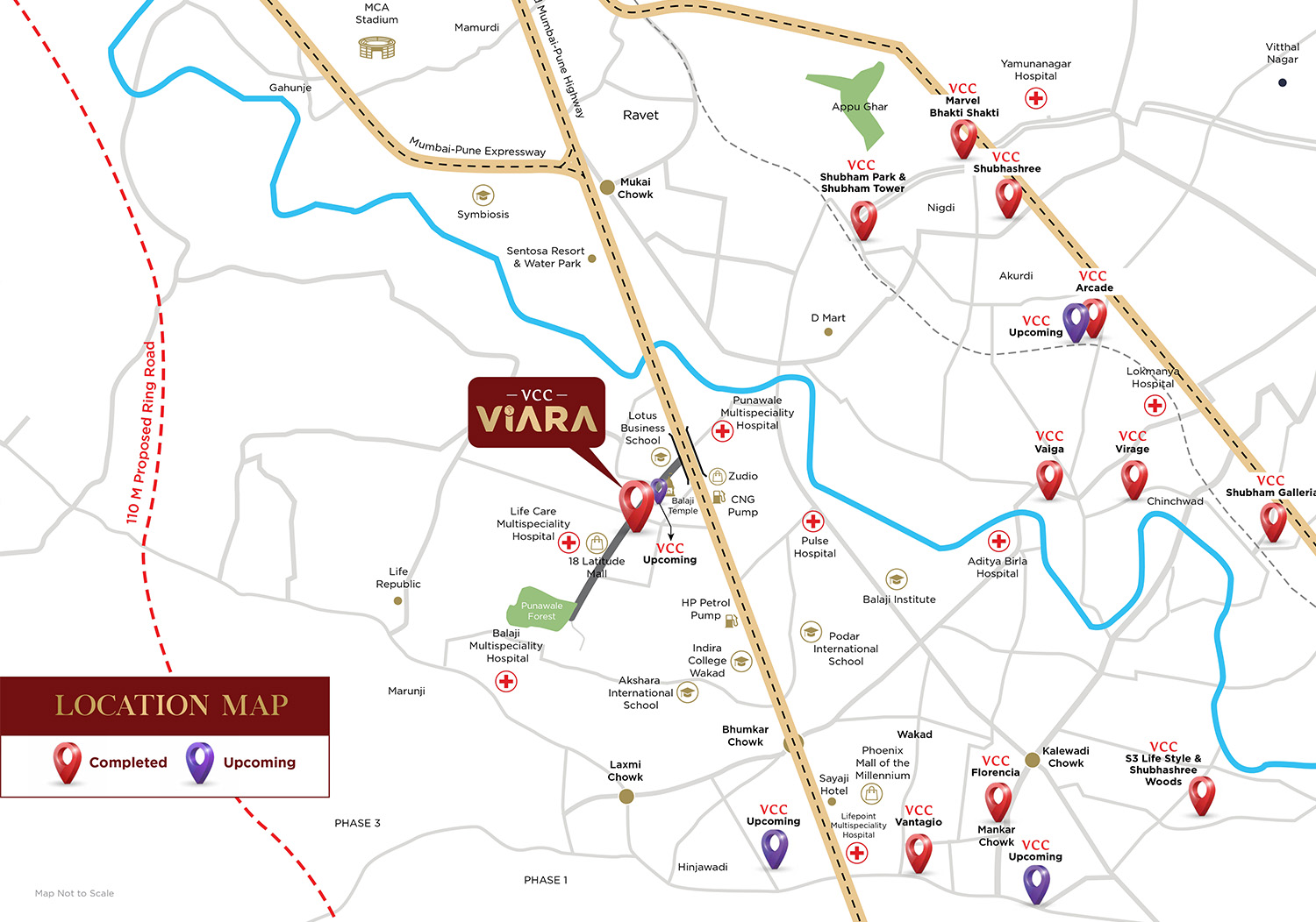 VCC Viara is an epidome of modern & serene living crafted right at the heart of Punawale. This high rise gives you the opportunity to stay above the City & chaos where you can experience the royalty of living at the top like a king. With 4 levels of ventilated Car parking and 3 levels of state-of-the-art amenities to make your everyday easier. Where, residences of all ages groups can enjoy their own Share of happiness. Our vast Compliant homes are the once where search of best home finishes. These budget friendly homes allows residences their own space to work, rest & play.